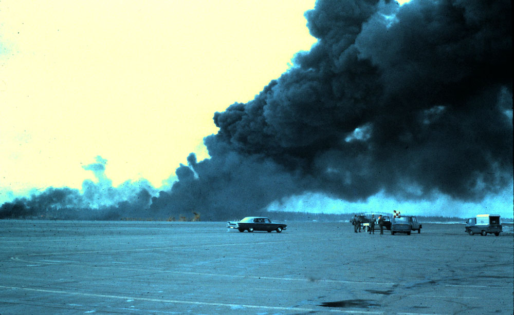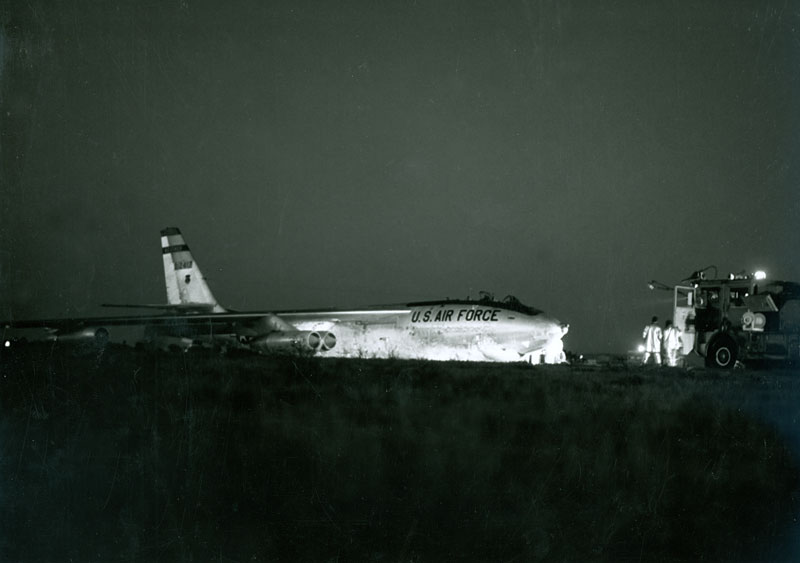 Eielson AFB, AK Barely six months after the first operational missions flown by WB-47E aircraft, the only accident occurred that resulted in fatalities. A three man crew from McClellan was TDY to Eielson to fly on the Ptarmigan polar track. Since this was the first Ptarmigan mission for the 55th navigator, Capt Warren S. Hillis, a Det 1 Instructor Nav was on board to check out Capt Hillis on polar procedures. This duty fell to Maj Conrad L Leinhart. Also on board was TSgt Charles F Heckman, an AFTAC SEO. Three men downstairs made for cramped quarters. Then Capt Dick Purdum was assigned to Det 1 at that time, and flew on another mission that day. Dick would later serve as the Standardization Pilot for the WB-47 at the 9th WRW. As Dick relays the story, the mishap aircraft commander was then Maj Franklin Ross. Due to his unfamiliarity with the Eielson runway, being stationed at McClellan, Maj Ross attempted to keep the aircraft flying (rather than letting it settle back to the ground) after a small hump in the runway caused the WB-47 to become airborne just below unstick airspeed. Failing to gain sufficient speed, the aircraft stalled, crashed, and burst into flames near the departure end of the runway. The pilots were able to blow the canopy and escape over the wing, albeit with serious burns. Maj Leinhart, Capt Hillis, and TSgt Heckman did not get out, and perished in the fire. As a side note, Frank Ross went on to command the 54th WRS in 1974-75. Please check out our Gone But Not Forgotten tribute to all the men who died supporting weather reconnaissance and atmospheric sampling in AWS aircraft. |